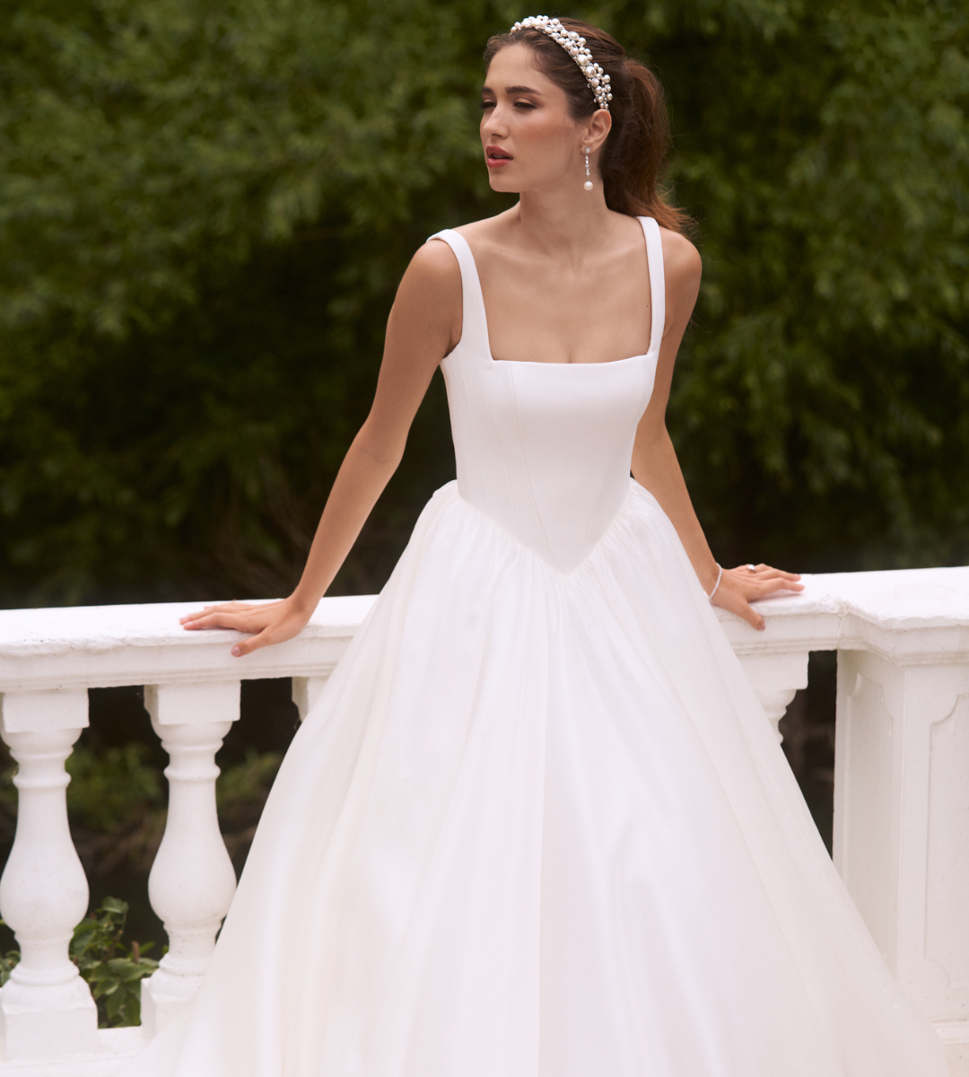 British designer Caroline Castigliano has been at the forefront of luxury bridal and eveningwear for 32 years. Known for understated effortless glamour and clean classic lines with contemporary touches, Castigliano’s collections are designed to create impact from the moment you walk into a room.