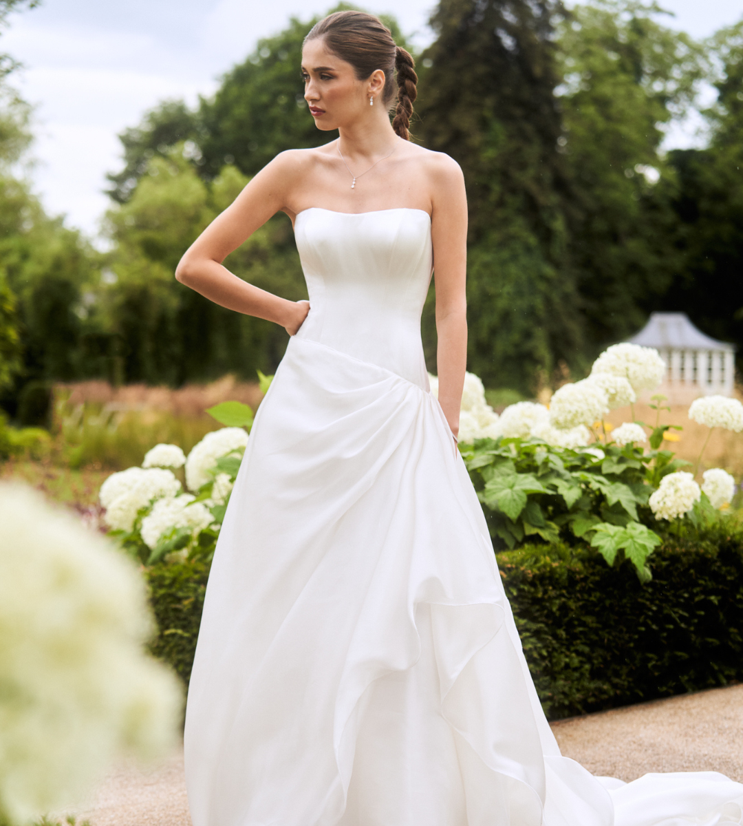 Caroline Castigliano’s main bridal collection is available at selected stockists worldwide. The ‘Knightsbridge Collection’ is available exclusively at the Knightsbridge store.