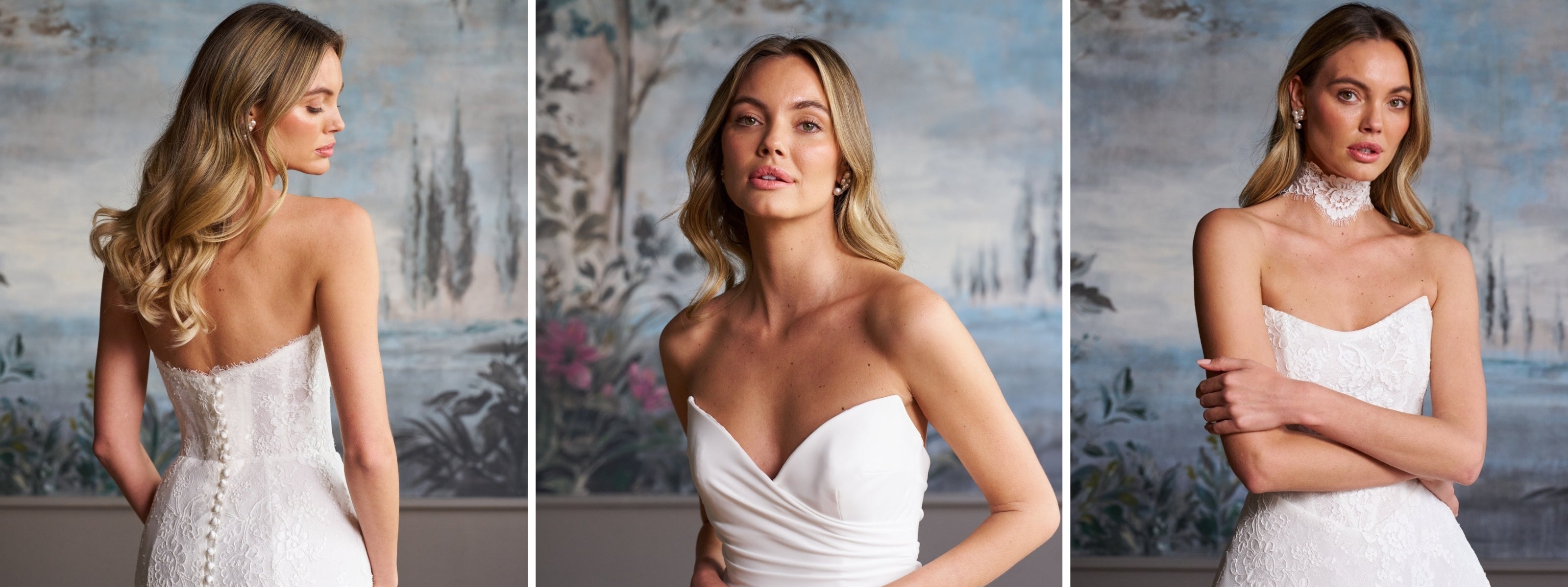 The Castigliano 26 Accessories Collection is designed to feel effortless. Modern layers that naturally complement the gowns and enhance the silhouette without feeling over-styled.